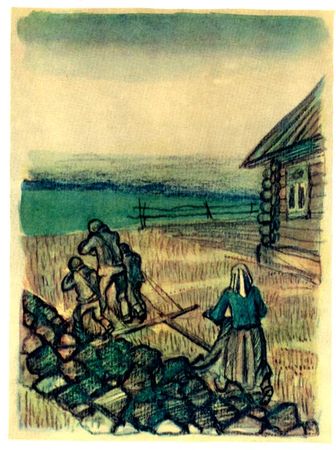 Но подымали - и пахали, и сеяли, и убирали скудный урожай. И примешивали лебеду к муке. И жили. Когда же Алексей Иванович из госпиталя пришёл, стали и свой приусадебный участок возделывать. Он сколотил сошку, пахали всей семьёй: сам за коренника, Юрка с Борькой на пристёжке, Анна Тимофеевна пахарем.