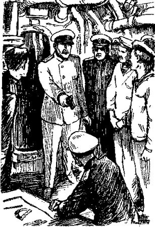 Капитан с минуту глядел на команду твердыми, горящими глазами. Затем круто повернулся и пошел назад. Мичман побежал вслед за ним.