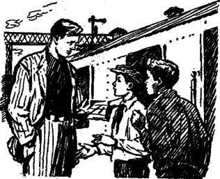 Мы уже подбегали к паровозу, как вдруг увидели, что прямо на нас едет тележка с какими-то ящиками. Андрей бросился в сторону и чуть не сбил с ног высокого человека в сером костюме. Человек обернулся - и у меня от страха затряслись ноги: перед нами стоял старший вожатый лагеря Сергей Сергеич. "Ну, все кончено! - подумал я. - Сейчас нас отправят домой".