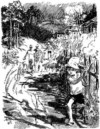 Лягушка, перескочившая ему дорогу, вернула Комарова к милой земной привычности. Он побежал за лягушкой и догнал ее у самой обочины. Когда тень мальчика накрыла лягушку, она замерла, выгнув спину. Комаров схватил ее и, повернув на спинку, стал рассматривать бледное брюшко. Он рассматривал долго, тыкал пальцем в упругую пленку. Верно, он искал комочек вара и стальной рычажок, с помощью которого скачет игрушечная лягушка. Но у этой живот был совсем гладкий, и Комаров задумался. Панама сползла ему на нос, но он не замечал этого, поглощенный новой загадкой жизни. Он чуть сжимал и разжимал ладонь и как будто к чему-то прислушивался. Лягушка не двигалась, ее длинные сухие ножки торчали из кулака мальчика двумя хворостинками, но, верно, все же его руке сообщился трепет жизни маленького тела.