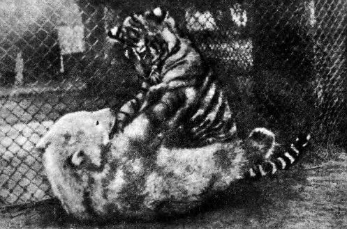 Обыкновенно борьба кончалась вничью. Но как-то раз Сиротка так надоела неповоротливому медвежонку, что он залез от неё в воду. Сидит Фомка, прохлаждается, а Сиротка вокруг ходит, достать не может. Долго ходила она так, потом не выдержала да как прыгнет! Промахнулась и в воду шлёпнулась. Вот тут-то и задал ей трёпку Фомка. В воде он оказался куда поворотливей тигра. В одну минуту подмял под себя и так возил под водою, что чуть не утопил. Вся намокшая и перепуганная, с трудом вырвалась из медвежьих объятий Сиротка и позорно бежала в свою клетку. После этого Сиротка уже опасалась подходить к бассейну, когда там сидел Фомка, и даже пить воду уходила в другое место.