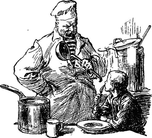 В глазах кока десятилетний юнга Лесков был младенцем, а в глазах Виктора Костин-кок, знатный кулинар флота, был нянькой, которую случайно нарядили в бушлат и клёш, с которой можно покапризничать, немного поскандалить и без особого труда добиться своего. Впрочем, на этот раз они были заодно: Костин-кок спешил ликвидировать аварию, а Виктору казалось, что от голода он стал совсем прозрачным. Иона Осипыч втолкнул его в камбуз, потащил к умывальнику, заставил его вымыть руки, усадил за стол, надел на свою круглую бритую голову белый твёрдый колпак и так загремел кастрюлями, будто собирался накормить до отвала целую дивизию. Виктор почувствовал, что жизнь входит в свою колею и что, в сущности, он не так уж несчастен.