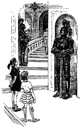 Белую мраморную лестницу стерегли мрачные рыцари в латах.