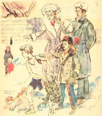Тут учительница опомнилась. Схватив Генкино пальто, она побежала за ним.