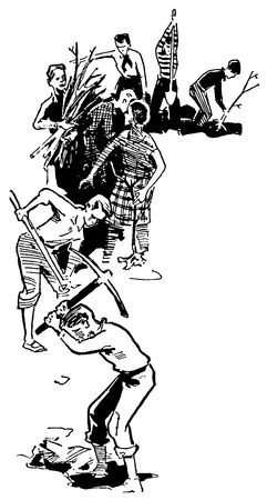 Петя и Валя работали рядом. Валя, наверно, обиделся, потому что не смотрел на товарища, а молча копал глубокую канаву.