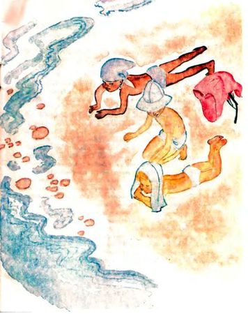 Пати испуганно закричала и выпустила нитку. Толкнула случайно Юру, и он не удержался на камне и свалился в море.