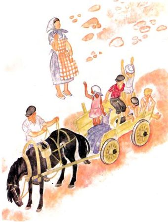 Трофим Кондратьевич дёрнул вожжи, и подвода покатилась вверх по дороге, туда, где скалы, а ещё дальше - горы.