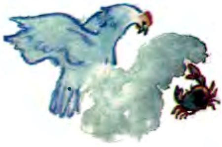 Вдруг дядя Викентий дёрнул ногой. У него на ботинке сидел краб. В то время как Пати медленно, по слогам читала радиограмму, краб незаметно вытянул у неё из рук нитку и убежал.