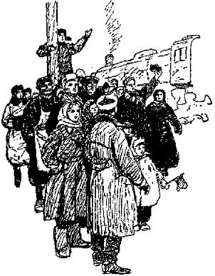 Потом из-за водокачки показался поезд. Шумно отфыркивался заиндевевший паровоз. Воробьи вспорхнули, уступив ему место. Паровоз торжественно протрубил и не успел замолкнуть, как его вступление подхватил оркестр. На перроне стало тесно.