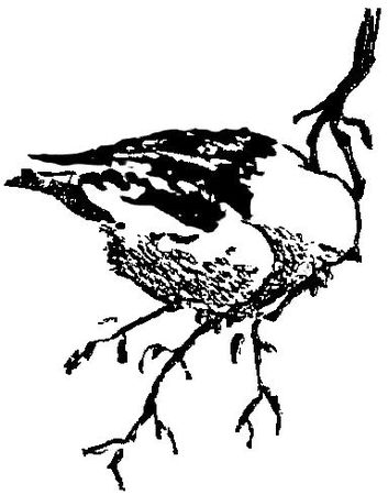 У отвесной вершины, меж тоненьких берёзок, порхали стайками маленькие птички с ярко-белыми грудками и чёрными спинками. Но они мелькали так быстро, что разглядеть их было трудно - будто кто-то бросал горстями чёрные и белые семечки.