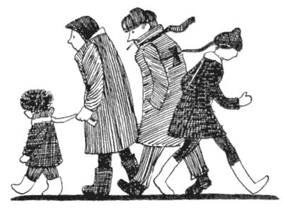 Бежали машины, звенели трамваи, и самолёты летели в небе, и торопились по улице прохожие… Всё двигалось и спешило. И Аня незаметно для себя прибавила шагу. Она почти побежала. И ей стало приятно оттого, что она так торопится вместе со всеми, и ей даже показалось, что все эти люди, и она вместе с ними, спешат по какому-то одному и очень важному делу, и она сделала такое же озабоченное, как у других людей, лицо.