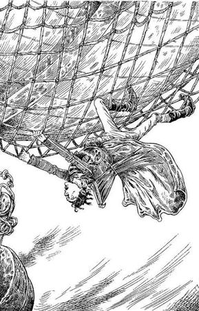 "Проще сказать, чем сделать", - пронеслось у Прутика в голове, когда он начал осторожно спускаться по тросам, опутывавшим корпус корабля подобно паутине. Холодный ветер трепал его волосы, и пальцы занемели. Но теперь он уже видел кормовой противовес, который запутался в просмоленном тросе.