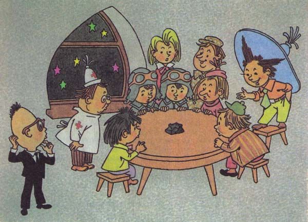 Как только солнышко скрылось за горизонтом, все уже были у Знайки в комнате.