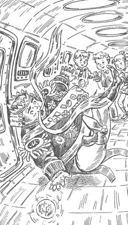- Наконец-то я нашел вас! Что здесь происходит? - выпалил, внезапно появляясь, Пап. Солнечно-рыжий быстрый Пап успел обежать весь корабль. - Почтенный человек упал, а вы - как каменные! Не узнаю вас, земляне…