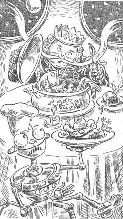 Обед на корабле - самый приятный час для пассажиров. Стюарды заранее сервировали стол. Здесь были салаты, супы, дичь и рыба, фрукты и напитки, приготовленные по лучшим рецептам планет Солнечной системы.