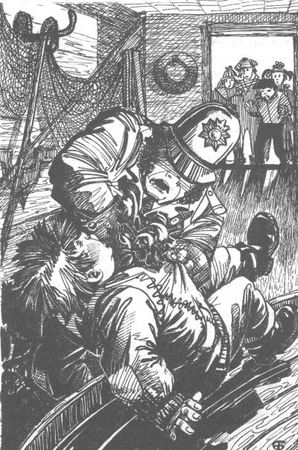 Фэтти ничего не мог сделать. Во-первых, он был почти в шоке от того, что Пошелвон засовывает мокрые тряпки ему за шиворот. Во-вторых, разъяренный Гун был силен как никогда. Фэтти отчаянно пытался сопротивляться и уворачиваться. В конце концов они оба свалились с лодки, оказавшись на земляном полу сарая. Пошелвон всей тяжестью навалился на Фэтти сверху.
