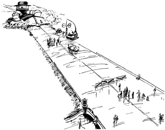 - В этом-то и вся штука! - оживился дедушка. - Помнишь, как на уроках физики нам доказывали, что построить "перпетуум-мобиле" - вечный двигатель - невозможно. А вот эта машина, в сущности, вечный двигатель. Ты не удивляйся! Конечно, и она не вечна, но… дело в том, что для нее не требуется горючего. Вначале, когда ее построят на заводе и запустят в ход атомный котел, ей, конечно, горючее требуется. А потом, в дальнейшем, она сама добывает горючее из той земли, что она же и расплавляет. Ты, конечно, знаешь, что многие редкие элементы рассеяны в земной коре - в песке, земле, камне - в таких ничтожных количествах, что добывать их раньше было просто невыгодно. А вот при такой машине стало выгодно. У нее есть специальный атомный сепаратор, который сортирует всевозможные элементы, когда они расплавятся в ее недрах. Ненужные атомы сепаратор выбрасывает, и они, соединяясь в лаву, идут на строительство шоссе. А редкие, нужные элементы сепаратор сортирует по своим кладовочкам-полочкам. Так что эта машина, строя шоссе, добывает еще и химически чистое железо, медь, серебро, золото, кобальт и многие-многие другие элементы. Некоторые из них поддаются разложению в атомных котлах и служат атомным горючим. Понимаешь? Машина сама добывает себе энергию, сама перерабатывает ее и сама дает столько и такой продукции, как в прошлом целая группа заводов. Вот, брат, какая это умная и дешевая машина!