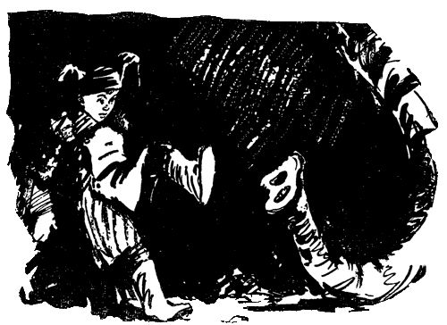 В это время над ним опять раздался отчаянный рев, и та стена, к которой он лежал прислонившись головой, закачалась. На лицо упала оттаявшая земля. Вася оглянулся и увидел, что справа, в самом углу, топчется огромная, как бревно, волосатая, с костяными наростами на ступне, определенно живая нога. Не помня себя Вася вскочил и отпрыгнул в противоположный конец ямы. Это спасло его, потому что почти сейчас же над ним метнулась темная змея. Прыжок отнял последние силы. Ноги подкашивались, в горле пересохло, сердце стучало медленно и глухо. Вася не выдержал и присел.