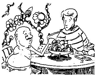 Из отверстия в центре стола выплыла тарелка, на которой лежала горка предметов, весьма напоминавших маринованные глазные яблоки. Я решил отказаться от завтрака.