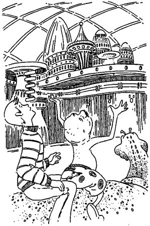 Весь день мы осматривали город. Его красота превосходила всякое воображение. Руумба, доставивший нас сюда, мог служить типичным примером того, как местные жители справлялись с разными повседневными проблемами: большую часть работы, которую обычно берут на себя городские службы, здесь выполняли специально выведенные и обученные животные. Больше всего- мне понравились пожиратели мусора. В каждом доме и магазине был один такой - маленький толстый зверек, с удовольствием поедавший любые отбросы.