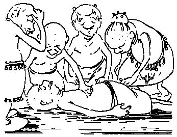 Ху-Лан лежал на полу, вытянувшись во весь рост. Его тело было жестким, как доска. Несколько маленьких голубокожих инопланетян собрались вокруг него, испуганно вскрикивая и размахивая руками.