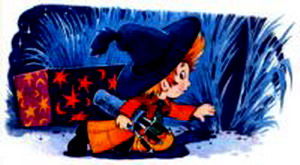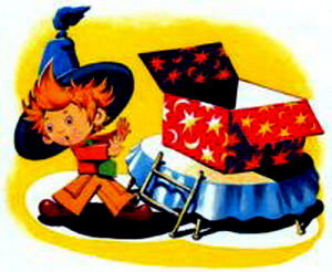 Через мгновение фокусник вонзил три шпаги в коробку, а оттуда как ни в чём не бывало под аплодисменты появился Гунька. Незнайке стало завидно. Он представил себя на месте Гуньки и очень пожалел, что так испугался и убежал.