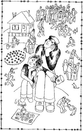 До полного изнеможения бил Шурик по воротам (вернее, по тому, что от них осталось), и ДЯДЯ КОЛЯ НЕ ПРОПУСТИЛ НИ ОДНОГО ГОЛА! Он кидался, бросался, метался к мячу с дикими выкриками и, грохнувшись на землю, не всегда сразу мог подняться.