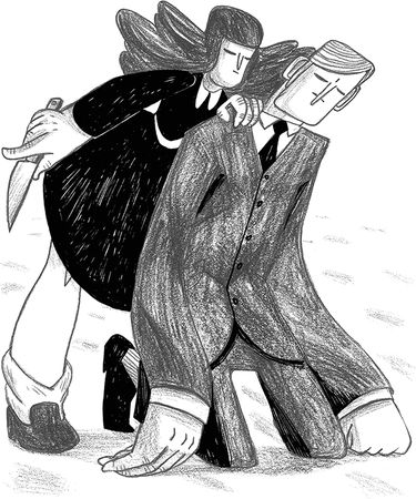 На Марго никто до сих пор не обращал внимания. Она появилась вдруг, как будто упала с неба. В правой руке сверкал нож для мяса, в глазах молнии. Она подскочила к отцу и приставила кончик ножа к его горлу. Отец отпустил руку Томаса и уставился на нож.