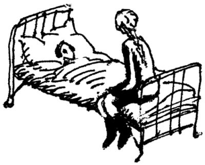 Изоляторная сестра тётя Зоя всё время кладёт ей на голову мокрое, холодное полотенце. Полотенце сразу нагревается. Тётя Зоя мочит его в тазу, выжимает и кладёт снова.