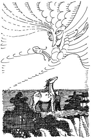 – Я, пожалуй, знаю, где вам искать лосёнка. Это наверняка дела птицы Гаганы. Она не очень-то добра. – Развигор вздохнул. – За тёмным полем есть неодолимый дуб. А под тем дубом растёт трава улови-ветер. Это её Гагана там посеяла. Добыла где-то за горами, за долами, принесла в клюве и посеяла. Мы-то с этой травой враги. Она никакому ветерку подуть не даёт – ловит. И всякого, кто ни подойдёт, – ловит. И держит цепко – не вырвешься. Несимпатичная трава, ничего не скажешь. Ах уж эта Гагана! Клюв у неё, вы слыхали, – медный, а когти – железные.