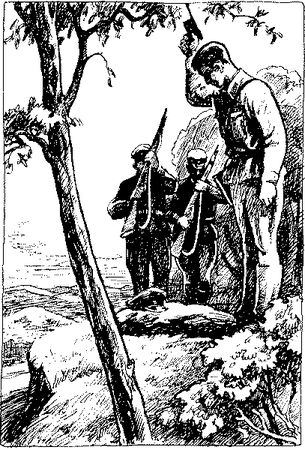 На земляной бугорок положил зеленую пограничную фуражку и, минутой молчания почтив память верного друга, сделал несколько прощальных выстрелов из своего маузера.