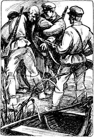 Около тех кустов, в тени которых я лежал сегодня утром, послышалось движение, шуршание песка. Мы незаметно приблизились к самым кустам. И когда человек, выпрыгнув из лодки, сделал шага два вперед, Сахиев и Иванов подхватили его под руки, а я, направив ему в грудь винтовку, спросил:
