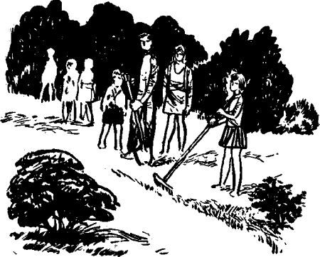 Не обращая внимания на роту Раазуке, пионеры и их помощники перешли на другой конец парка. Маневры роты потеряли интерес новизны даже в глазах малышей, и они снова взялись за грабли. Пионеры принялись расчищать конец парковой дорожки.