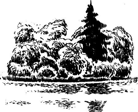 Остров был почти круглым - сотня шагов и вдоль и поперек. На мысу высился небольшой ельник, еще на острове росли можжевельник и березы. Попадались и клены. Один край острова был окаймлен густым ольшаником, другой - кустами малины. Здесь росло даже четыре больших орешины. Вокруг разрослись черные папоротники, они поднимались выше головы мальчишки. И еще здесь была крохотная полянка с мягкой, как ковер, травой.