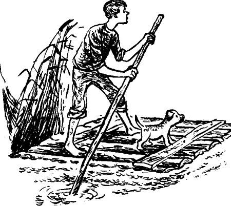 В сухопутных условиях Клык выказывал себя славным и понятливым щенком, однако на плот пришлось затаскивать его насильно, а в море Клык стал абсолютной размазней.