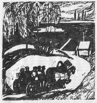 Показался Федя. Он помог нам взять вещи. Мы увидели на дорожке подводу.