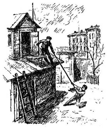 Крапивин меньше всего ожидал столь коварного движения с его стороны. Он чуть-чуть не свалился с крыши и едва успел удержаться за косяк. Но шест он так и не выпустил.