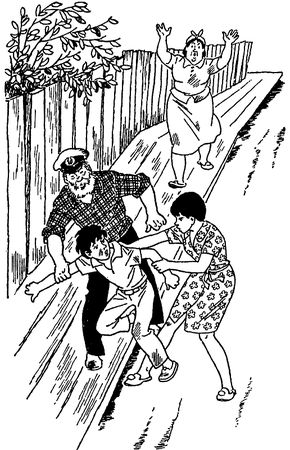 В отличие от Инны, Юра давно уже оцепенел, со страхом прислушиваясь к голосам в коридоре. Но через какое-то мгновение немая сцена кончилась. Бросив сумочку на пол, Юра вскочил на подоконник, скрючился, чтобы пролезть в тесное окно, и пропал за ним. Инна недаром занималась в секции легкой атлетики. Она бросилась сквозь окно вслед за Чебоксаровым, но подол ее халатика зацепился за крючок на подоконнике, это чуть-чуть задержало ее, и Чебоксаров успел выскочить за калитку. Однако Инна была не из тех, от кого легко уйти. Размашистым, спортивным бегом она быстро настигла Юру и схватила его правой рукой за шиворот, левой - за локоть. Чебоксаров стал вырываться.