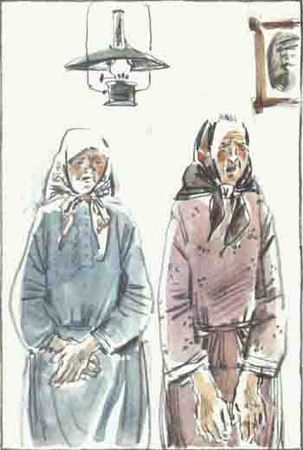 Дед Клава степенно прошёл перед стенкой старух и поклонился запевале, и та ответила поясным поклоном, торжественно и чинно.