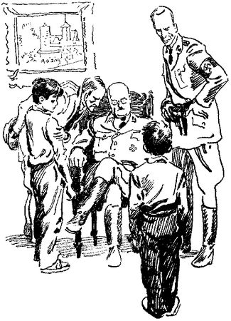 Я бросился к двери, толкнул ее… Фашистский капитан был уже не тем добрым капитаном, который поощрял меня к откровенным высказываниям. Он держал Димку за руку и что есть силы выворачивал ее.
