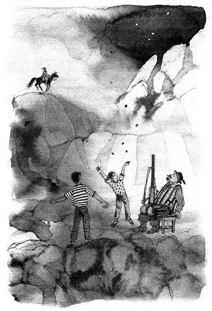Вдруг мне показалось, будто ножки табуретки выросли, у нее появилась шея с развевающейся гривой и высоко поднятая голова - она словно превратилась в гордого скакуна Буффало Билла. А дедушка сидел, выпрямив спину, и смотрел по сторонам - на камни, кусты и деревья, которые колыхались на ветру. Я догадался: он видит перед собой индейцев с яркими перьями, метких ковбоев, солдат, повозки, катящие по прерии, и бизонов с понурыми головами. Это был "Цирк Дикого Запада", о котором я прочитал в конце книги.