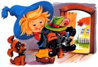 Незнайка забрал костюм и направился к охотнику Пульке просить высокие сапоги и шляпу, украшенную крылышком бабочки.