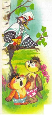 Теперь и доктор Дятел засмущался от похвалы и даже скрылся в дупле.