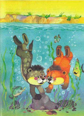 Вынырнули оба. Еле отдышался Суслик. Ещё бы! Столько под водою пробыть!