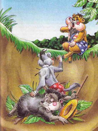 В неё с ходу Ёж и Суслик сверзились. Сначала Ёж, а Суслик следом. Ох, как лучший друг завопил, когда на Ежа свалился!