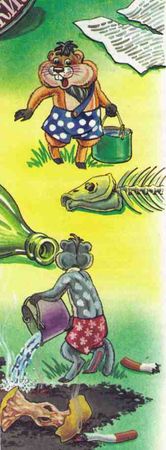 - Ездят на машине! Костры жгут! Лес рубят, щепки летят! А мусору, мусору!