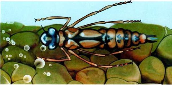 Личинки мошек закрепляются на дне быстрых потоков специальными крючьями. Они раскидывают в воде веера щетинок, работающие как воронки. Личинки "страхуют" себя с помощью длинной паутинной нити, по которой могут вернуться на место, если их снесет течением. Паутинные нити личинок мошек бывают до 2 м длиной! Вылупляясь из куколок, молодые мошки поднимаются на поверхность воды в пузырьке воздуха, оставаясь при этом совершенно сухими. Кстати, личинки девтерофлебии ползают по дну быстрых горных речек, попеременно передвигая длинные выросты с присоской на конце. Вылупившиеся из куколки девтерофлебии буквально выныривают из потока на поверхность.