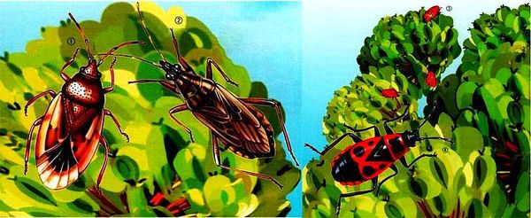 1. Земляной клоп 2. Клоп-хищнец 3. Щитник-линейчатый 4. Клоп-солдатик