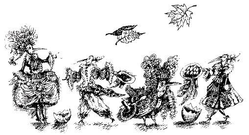 Немедленно отпраздновали свадьбу, и двенадцать дроздов несли шлейф принцессы. Старая колдунья Аккеба вновь поселилась на груше, и до сих пор в этом королевстве иногда перед дроздами снимают шляпу. Если бы ты разочек туда заехал, то увидел бы все собственными глазами и обязательно понял, почему такое случается.