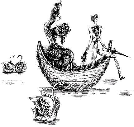 Принцесса терпеливо осталась поджидать принца, она опустила руку в воду, волны мягко покачивали лодку. Принц тем временем толкнул дверь бедной хижины.